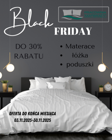 - Promocja: -30% rabatu na wybrane materace, łóżka i poduszki.